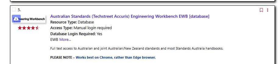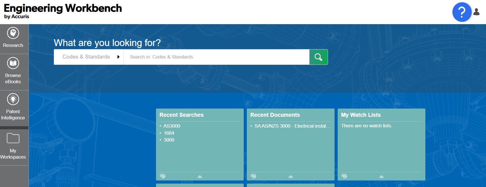 Engineering Workbench by Accuris (EWB) provides full text access to all current Australian Standards. This database has replaced the Techstreet platform for access to standards.
