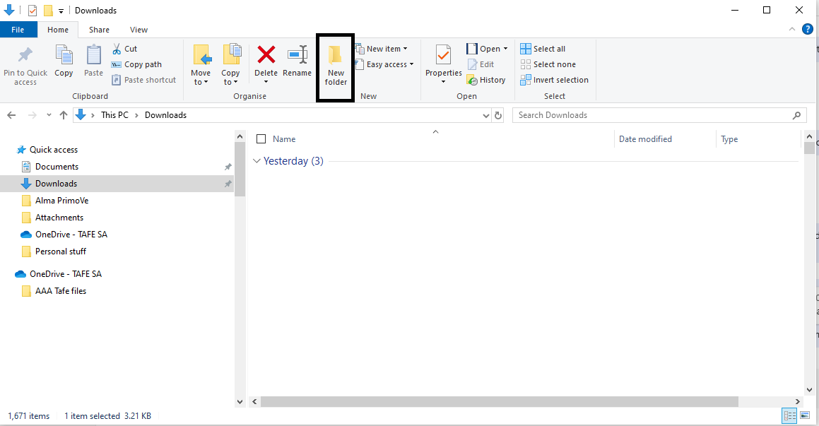 Folders are a great way to keep your TAFE documents in order. Imagine throwing actual paper documents in a filing cabinet. You would never find the one you need. Just like in a real filing cabinet, your computer files can be organised into folders.